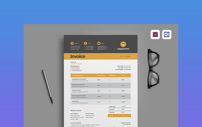 Application Name: 20 Best Invoice Templates For Indesign Illustrator Free